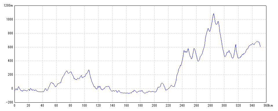 | 水平距離 | 351.25km | 沿面距離 | 351.65km |