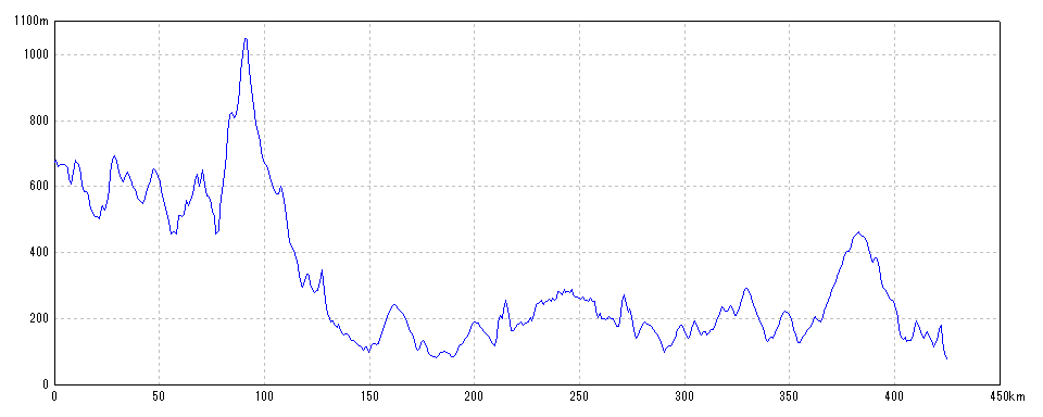 | 水平距離 | 425.45km | 沿面距離 | 426.21km |