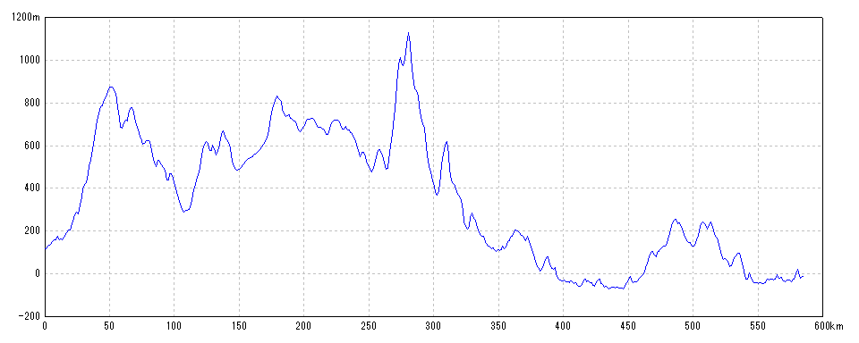| 水平距離 | 585.11km | 沿面距離 | 585.83km |