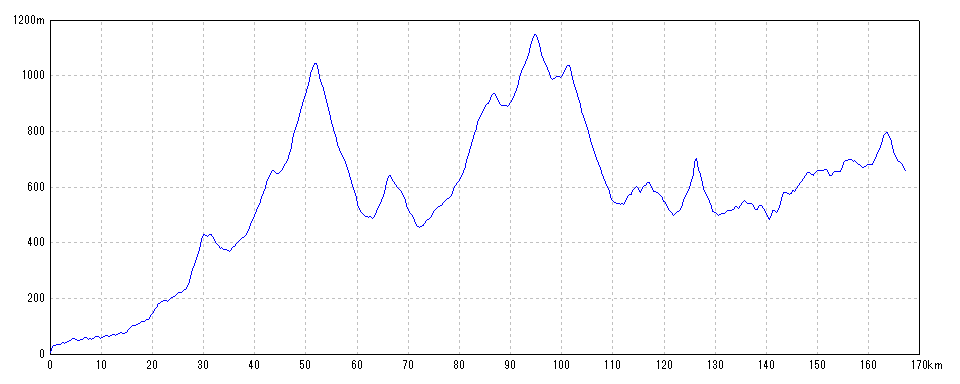 | 水平距離 | 167.13km | 沿面距離 | 167.51km |