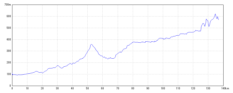 | 水平距離 | 136.96km | 沿面距離 | 137.24km |