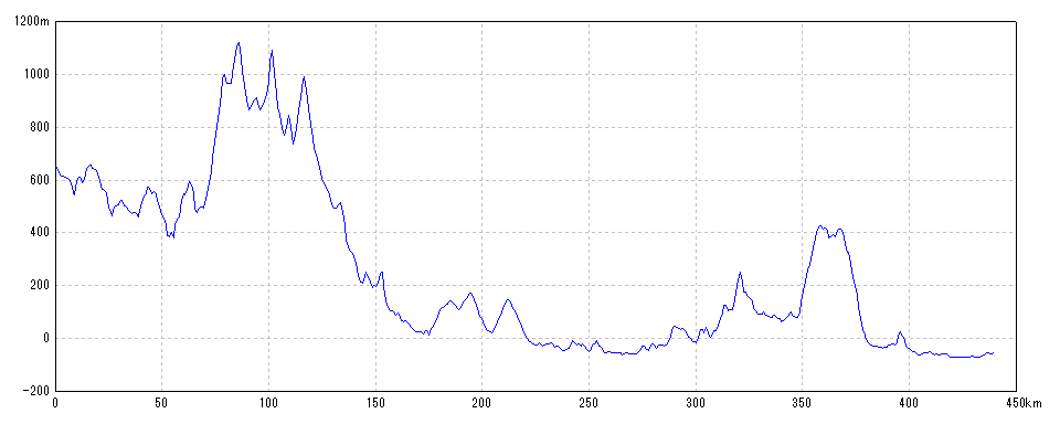 | 水平距離 | 439.90km | 沿面距離 | 440.39km |