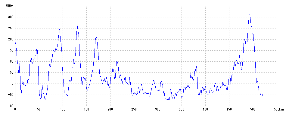 | 水平距離 | 520.10km | 沿面距離 | 520.46km |