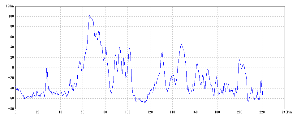 | 水平距離 | 220.46km | 沿面距離 | 220.55km |