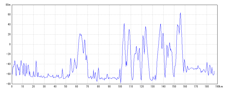 | 水平距離 | 186.87km | 沿面距離 | 187.44km |