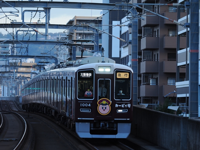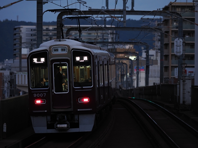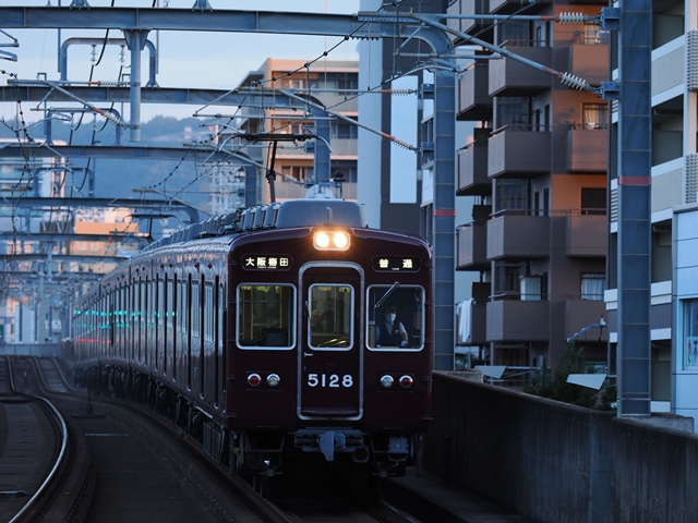 上り普通に乗る。岡町まで。宝塚方で明け方の光で撮る。