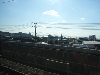 三河安城を出てしばらくすると右手に三河湾がちょっとだけ見えました。冬の低い太陽の光でキラキラ光ってなかなか綺麗です。キラキラ光った海はデジカメを構えた途端に手前の陸地に隠れてしまいました。