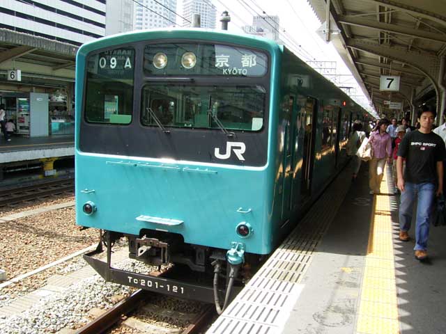 あまりだらだらと書く気力がなくなっているので写真多めにだらだらと行くことにする(逝)まずは大阪駅から。待っていたのはリニューアル改造された201系。前面は103系ほど大きく変貌していない。側面で大きく目立つのは戸袋窓が埋められ窓が下段上昇上段下降式から下段固定上段上昇式になったこと。この辺りは103系リニューアル車と同様のデザインだ。