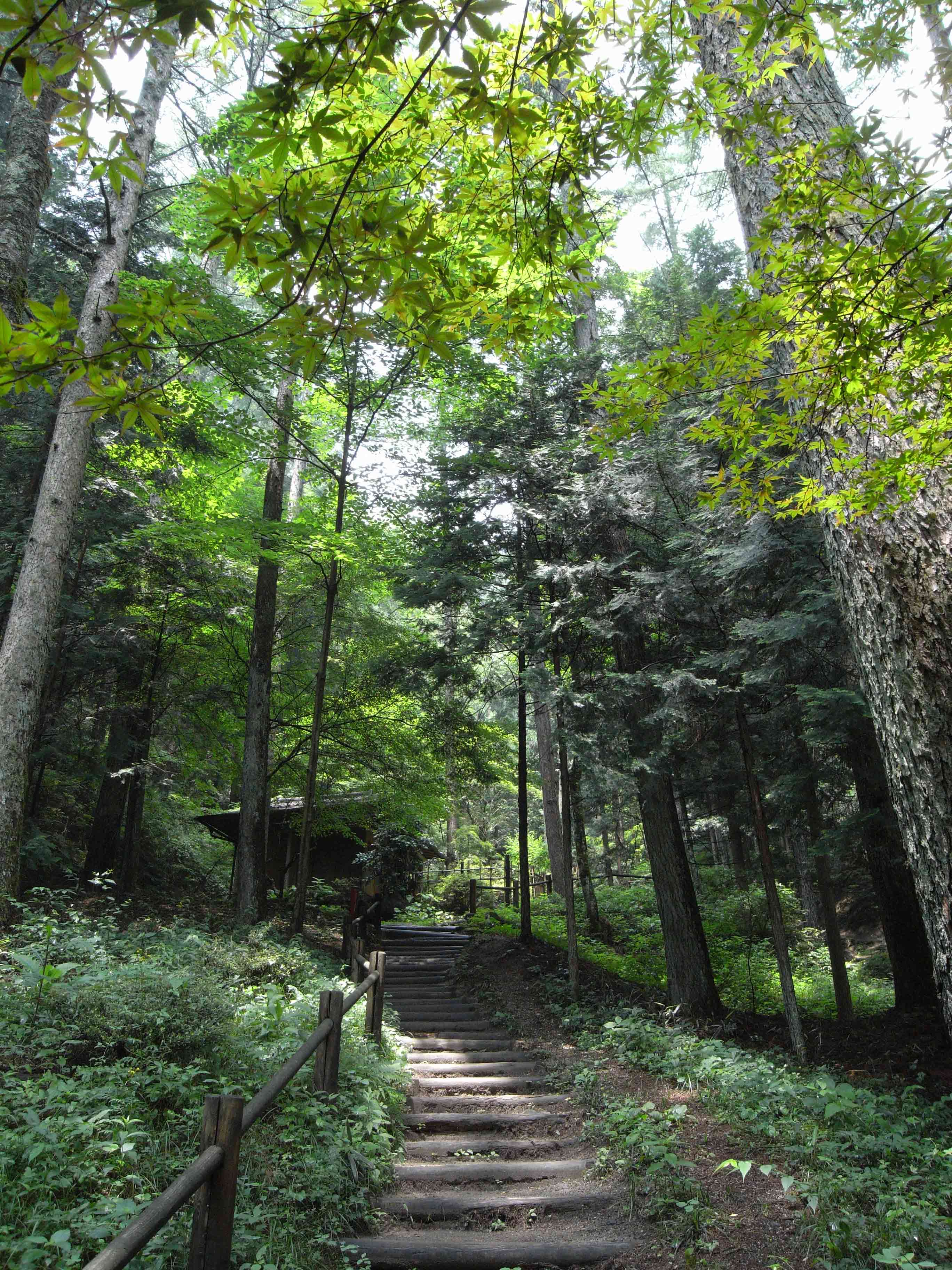 雨は降ってないけど真っ白なので下界の風景は期待できないので県境の駐車場は通過。一気に下る。