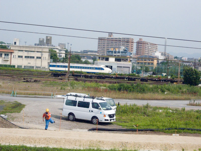 吹田操車場跡で、先日搬入された0系が見えた。車内から見える期間もそう長くはないだろう。