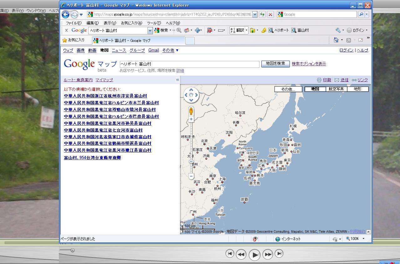 位置を特定するためにいろいろ調べたのだがいまいちわからなかった。ナビか60CSxに位置を覚えこませないと厳しいか。Googleで「富山村 ヘリポート」ってやったらこの有様(逝)結構薄暗いが、HD700の感度を最高設定にしているので画像は記録し続けているようだ。