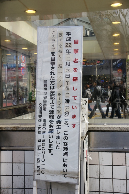 撤収して秋葉原を目指す。渋谷駅に着いたら、立て看板が。