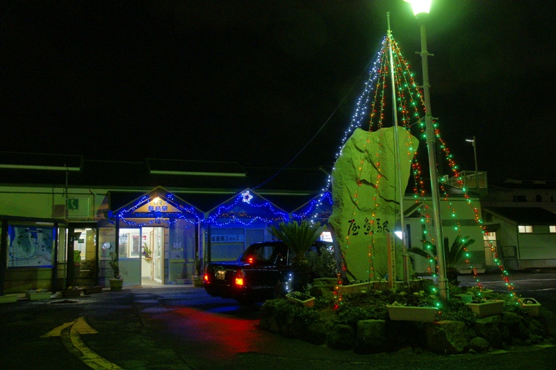 栗林で上り普通と特急をまとめて交換。1941屋島着。源平合戦の里だ。資料館とかもあるようだ。といってもやっぱり無人駅だった。でも駅前はLEDで電飾されてて綺麗である。