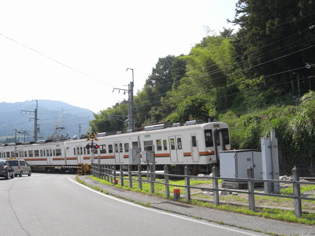 しゅるしゅると坂を下る。踏切で首を振ると、飯田駅に119系が見えた。まあ、ここで見えても追いつかれることはないよなあ。
