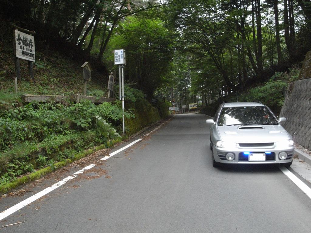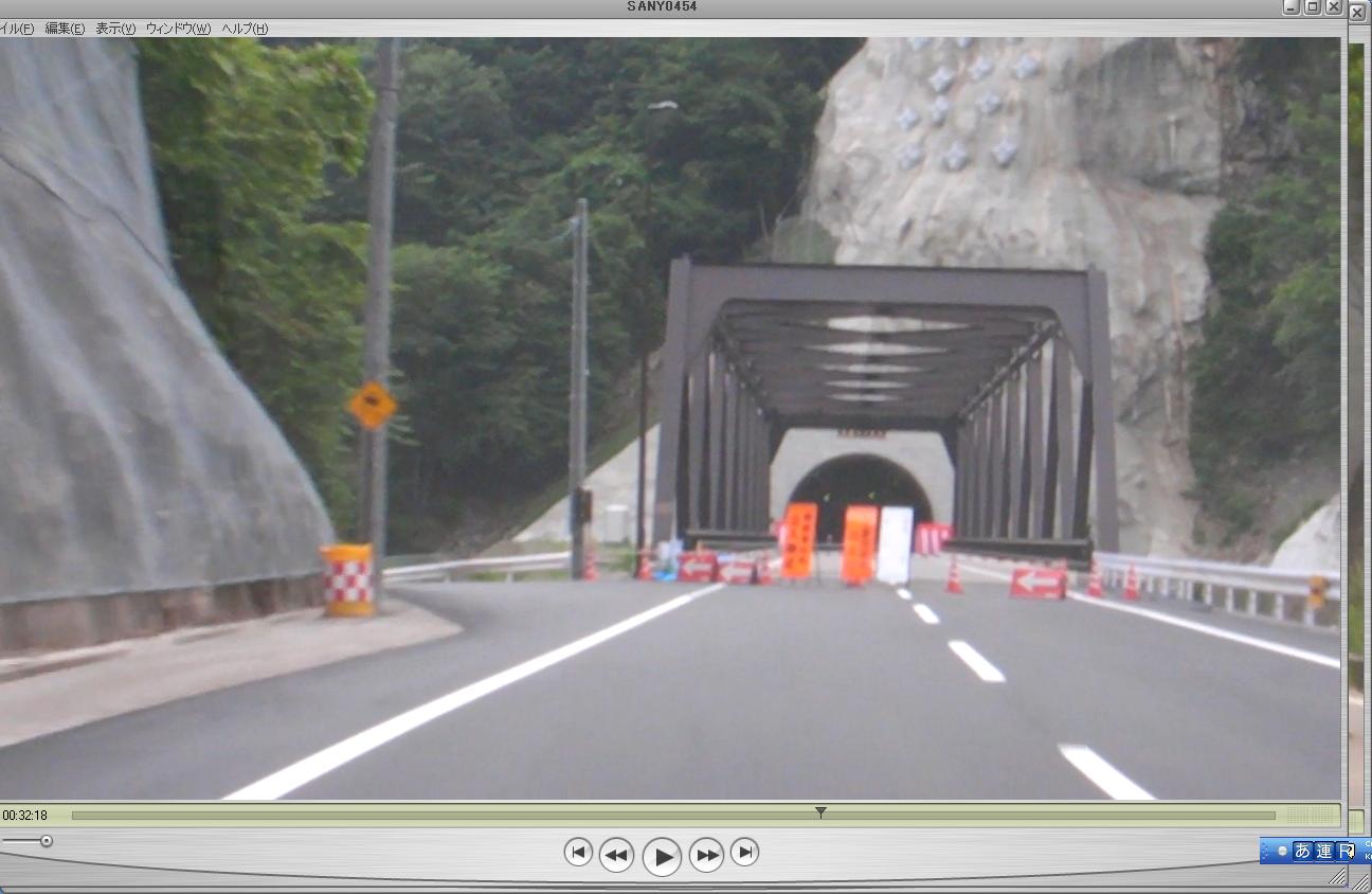 この道がなんだか楽しいぞ。来た方向に戻ってる気がするのが気にはなるがまあぐりぐり走るのがこの辺りの道だし気にしてはいけない。緩やかなアップダウンで道幅もそこそこ確保されており、いかにも「ドライブ」というような道が続く。夏の青空の下、何とも楽しいではないか。走っているといきなり道幅が狭くなる。これもURO2ならいつものことだ。これもまた楽し、ってことで十分に減速して進入する。ぐりぐり上るぞ。工事現場があり、ダンプが行き交うらしく、ダンプを追い抜くなとか、待避所とかが設けられている。やがて唐突に狭路区間も終了した。上り切ったようで下りに入る。