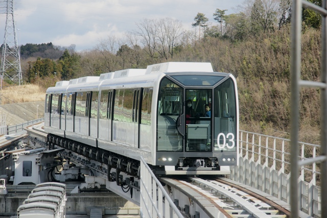 日中も10分間隔で運転しているからさほど待つ印象はない。やってきた電車に乗り込んだ。クロスシートベースなのが嬉しい、が万博の時は難儀したんじゃないだろうか。