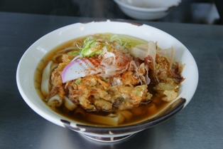 取り敢えず在来線連絡口から3番線ホームのきしめん屋さんへ。揚げたてのかき揚げきしめんを昼食にする。