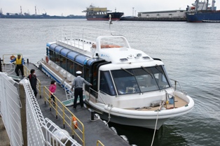 さて、水上バスにのって移動しよう。前回も気にはなっていたのだけど、あおなみ線の往復乗車券を調達済みだったので見送らざるを得なかったんだよな。