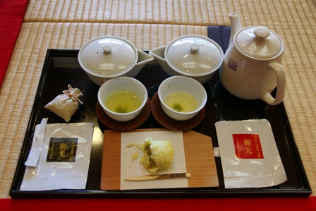 お菓子が崩れてるのは食べ始めちゃったから(逝)……染みるねえ。お茶ってこんな味なんだ。相変わらず驚かされる。