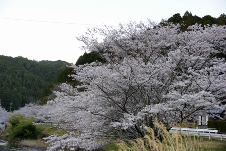再度渡る川の向こう岸に満開の桜が林立。こりゃあ絶景だ。R362を進む。山越えルートなので当然URO2であるが。ぐりぐりぐりぐり走って行くと。