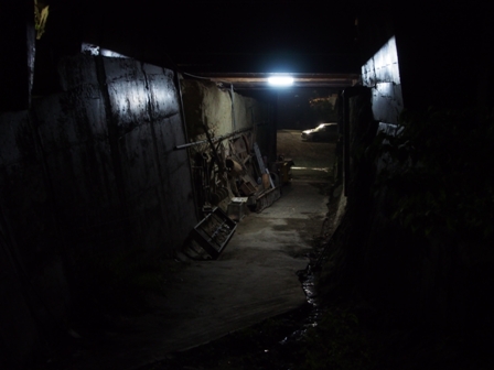 細い路地をそろそろと進む。