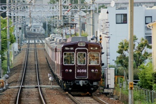 雲雀丘花屋敷行の普通が9005Fだったので乗る(逝)雲雀丘花屋敷で3000系急行に乗り換えて中山で下車。OM-Dで逆光の梅田行急行を撮影するけど露出補正値を間違った、と慌てたところに電車がやって来て惨敗(逝)次の急行で宝塚へ向かう。