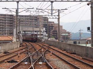 合間に、山下折り返しの2連が2号線から1号線へ転線する様子を撮影しておこう。こんな感じ。