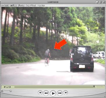 大阪から4時間かからないのか。今日は珍しく前走車が一緒に上って行ったぞ。って、自転車が上がってるぞ。すごいな。前走車は手前で停車。自転車は上の草見の滝へ。