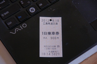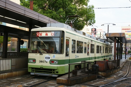 広島駅電停で1日乗車券を調達。券売機であっさり買えるのはありがたい。少し考えて、寄り道なしにしようと考え、2系統宮島口行に乗る。3800形だ。
