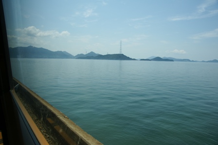 沿線の観光案内を聞く。車窓に浮かぶ島はがっさりとその土を関西国際空港のために積み出したそうな。