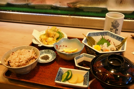 駅そばでも駅弁でもいいのだけど、せっかくだからたこ料理にするか、と観光ガイドさんに乗せられてみる。パンフレットにあったかわ蝶というすし屋さんに突入し、たこ三昧を注文。2000円は絶対的に高いけど駅弁1500円を食う時もあるんだから旅行中ならありだろう。ということにしておく。