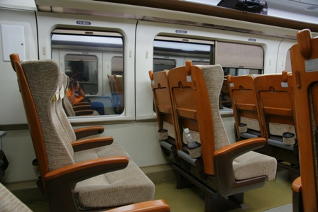 左が自由席。右が指定席。0936出発。自由席にも指定席にも数組ずつの乗車。