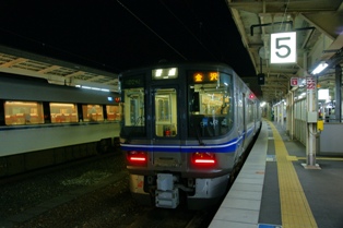 いつもの223系。右側の521系と微妙に塗り分けが違うのがここでわかる。