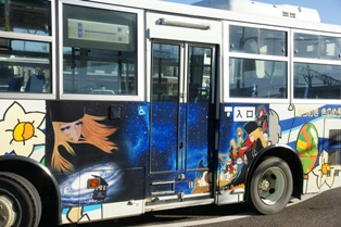 敦賀も松本零士だらけ。バス停とバスを撮影しつつ駅へ向かう。