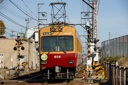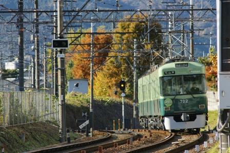 先頭車両で撮影ポイントを探す。むう。駅間が意外に長いなあ。石山寺着。改札出ずに折り返しちゃえ。