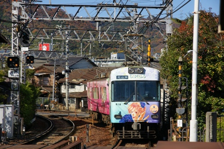 ちはやふるラッピング編成を含めて何本か撮影して軌道沿いに歩きながら浜大津へ向かう。