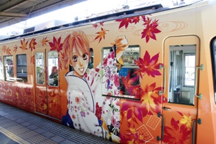 乗車してすぐにすれ違ったのがちはやふるラッピング編成だった。