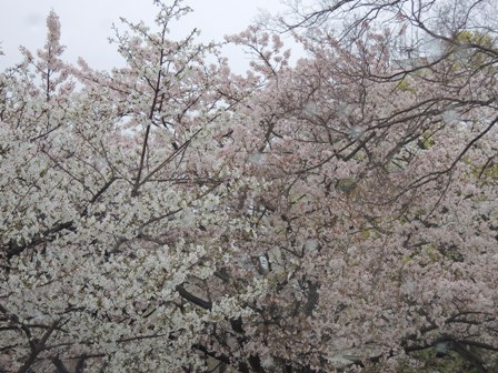 武庫川沿いは今が桜が満開。この雨で散っちゃうんだろうなあ。