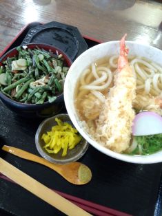 メニューはもはやバカの一つ覚え、えび天うどんと山菜ごはんである。うまいんだよー(逝)