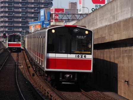 千里中央行に乗り込んで神崎川を渡り、江坂から先の北大阪急行電鉄区間に入る。緑地公園で下車。何列車かを撮影して、完全に被られるタイミングと余裕を持って撮影出来るタイミングの2パターンがあることに気が付いた。で、時刻表をみると合点がいった。7分間隔と8分間隔が交互なのだ。おそらく千里中央行が7分間隔の時にかぶるのだな。