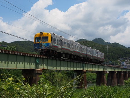 モータを唸らせながら山を下って行く。特急や普通と交換しつつのんびりと。後ろから特急がじりじりしながら追いかけて来ているはずだ。