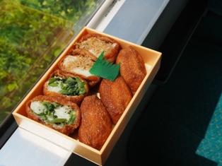中部天竜を出発したら空腹感を感じたのでさっそく三色稲荷に手をつける。わさびがいいんだよね。わさびだけで出してほしいとすら思う。