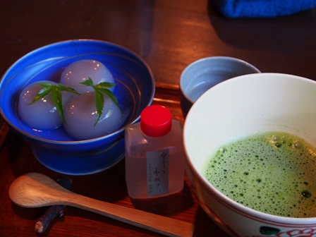 おしぼりで顔を拭いて、お茶を飲んで一服。