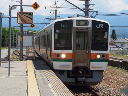 と駅に対しての自動放送が流れる。相変わらずだねえ。そして伊那路通1号が通過。