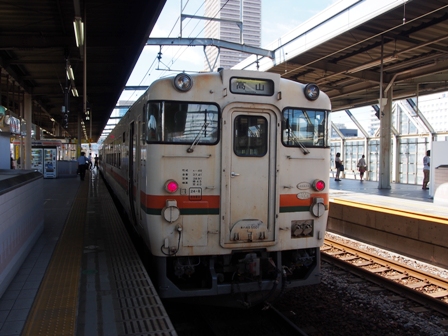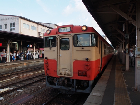 ちなみにJR西日本では国鉄急行色風に塗り替えられたグループがいて生き残ったら何でもあり状態である。1855Dはワンマン列車だ。キハ48はデッキを撤去している。代わりに半自動ドアが装備されているので真冬でも問題はない。