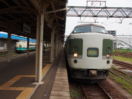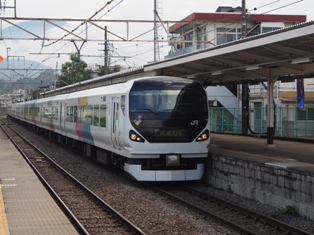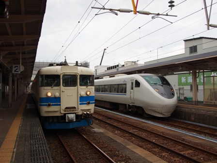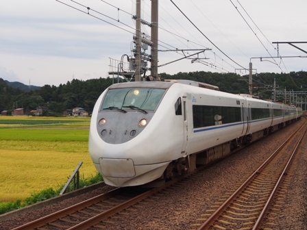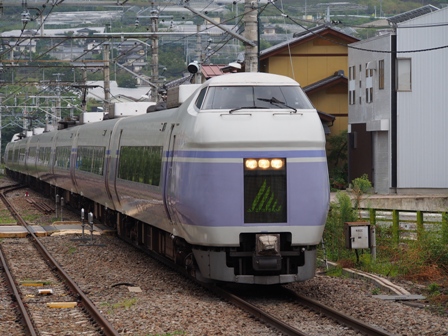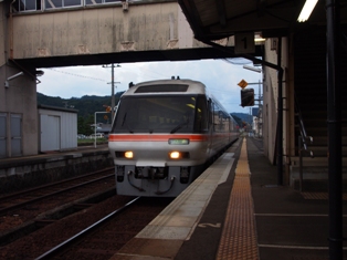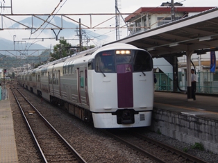1452、篠ノ井方に4つのヘッドライトが見えた。ワイドビューしなの16号の到着だ。383系である。