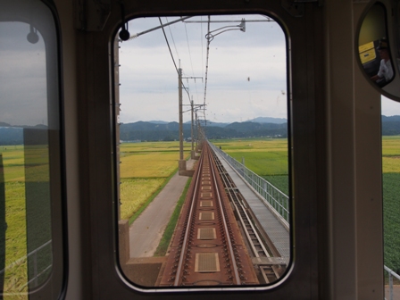 続けて列車は新垂井線と呼ばれる線路へ分岐して行く。新垂井線は下り勾配が長く続くこの路線の迂回路として建設された。貨物列車には有効だった時代があるのだろう。ただたんぼの真ん中を行く迂回区間には駅もなく、普通・快速はすべて垂井線と呼ばれる本来の本線を走る。かつては新垂井という駅があったのだが停車する列車も少ない上に下り列車しかこないといういろいろと困った駅なので廃止されてしまった。今この路線は貨物列車と特急のみが使用している。ただ、特急がこの区間を迂回しても時間がかかるだけで意味がないように思うのだがどうなんだろう。メリットあるのかな。関ヶ原で垂井線と合流。