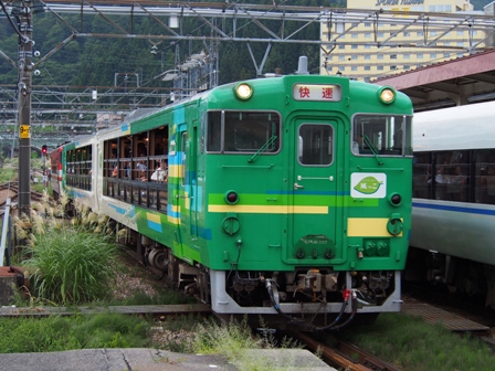 目が覚めたら美濃太田を過ぎていた。やがて車窓には飛騨川が寄り添い、目を楽しませてくれる。ここ数日の雨で増水はしているが濁流だくだくというほどではなく、迫力があってなかなかよろしい。川遊びには向かないけどね。