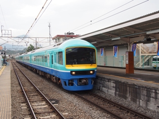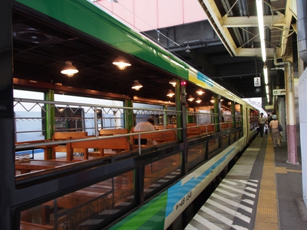 前回ニコニコ荘に行った時に乗った時ははのんびり座れたような気が奥があるのだけど、今日は待ち客が結構多いや。盛況なのはいいことだが入線してくる列車を取ろうとカメラを構えて待っていたら直前になって目の前にひょいと被られておじゃん。そりゃないよこの○○○。