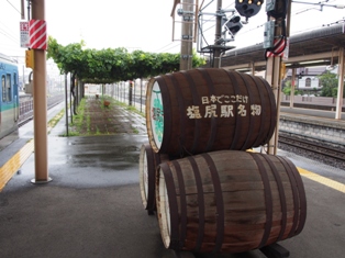 いったん改札を出る。トイレに立ち寄った後、キヨスクの土産物店を物色して会社に持って行くお菓子を調達。どこかでみたようなお菓子、で十分である。奇をてらう必要はない。
